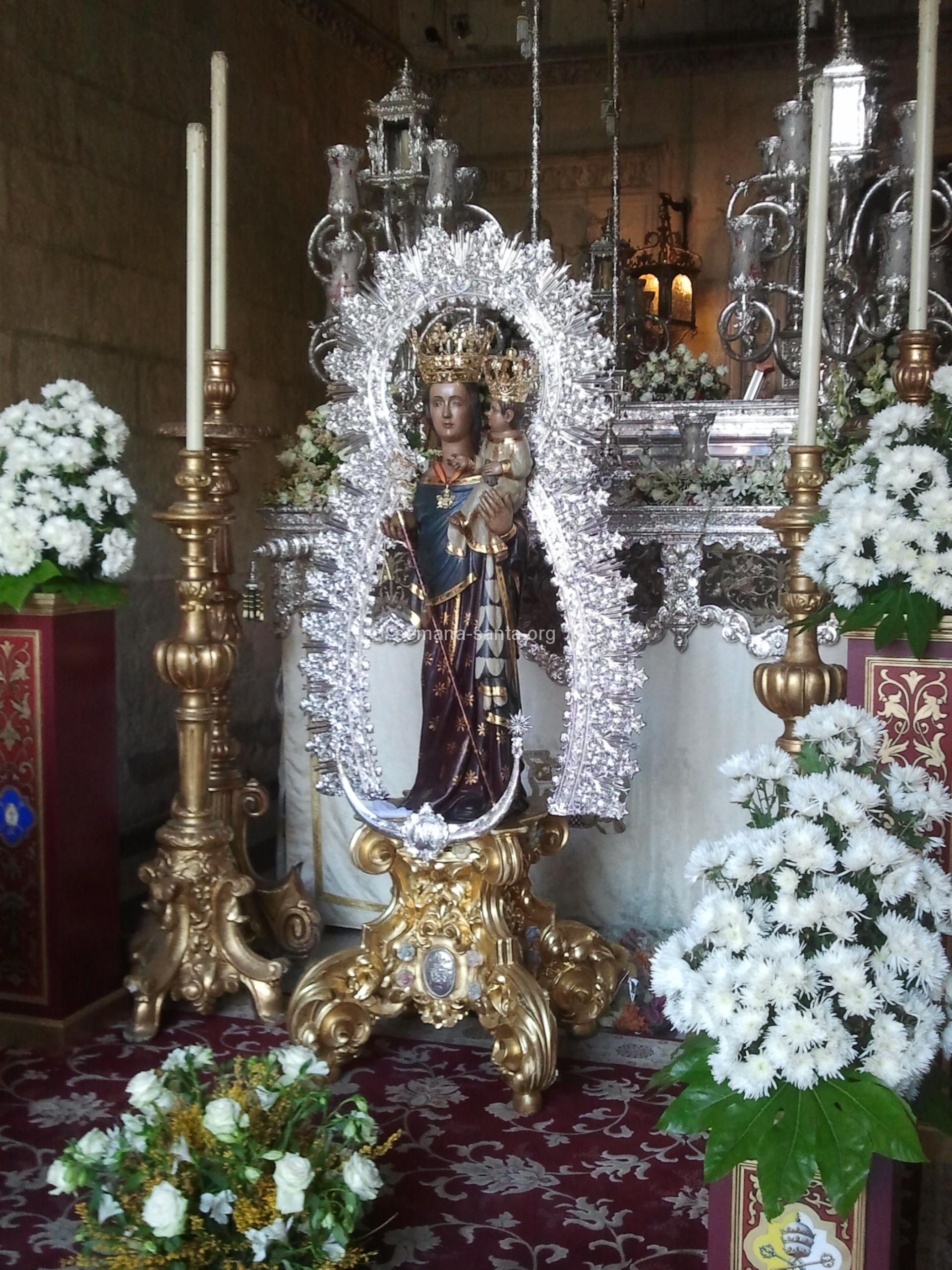 AYUNTAMIENTO DE SEVILLA. BESAMANO DE LA HINIESTA GLORIOSA.VIRGEN DE LA HINIESTA GLORIOSA CORONADA.DETALLE DE LA IMAGEN.VIRGEN DE LA HINIESTA GLORIOSA CON LA MEDALLA DE LA CIUDAD.UNA RETAMA DE HINIESTA PARA LA VIRGEN.