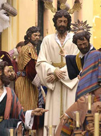 IMÁGENES: El Cristo es de Francisco José Reyes Villadiego de 1990. El mismo artista talló las imágenes de San Pedro, un centurión romano y la criada acusadora en 1997; José de Arimatea y el sayón en 1998, el criado y otro romano en 1999 y San Juan Evangelista en el año 2000. La imagen de la Virgen la realizó en 1984 Francisco Berlanga